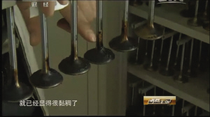 用了劣质燃油宝后,活塞上形成粘稠的油垢。(央视截图)
