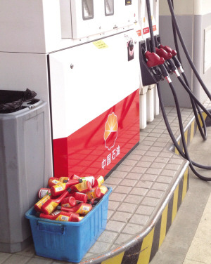 南京晨报记者注意到,在每台加油机旁地上的空纸箱里,已经堆满了用尽的“燃油宝”空瓶子。加油员聊天的时候说,这产品销路不错,每台加油机前差不多能卖一箱,赶上长假自驾游高峰前后,卖得更快。