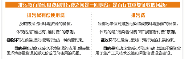 按照现有的排污收费制度,企业要根据排放污染物的数量缴纳排污费。意见明确,有偿取得排污权的单位,不免除其依法缴纳排污费等相关税费的义务。黄小赠表示,对企业征收排污权有偿使用费和征收排污费并不矛盾,不可相互取代。