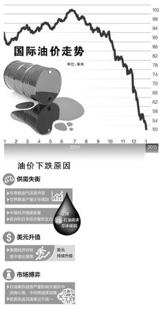 黄晓勇:国际油价自去年夏天起大幅降低,市场供需趋于宽松是首要因素。一方面,中国经济增速放缓,欧洲和日本经济复苏乏力,全球石油需求总体疲弱。另一方面,非常规油气资源的开发实现了更具经济效益的使用,世界原油产量正在增加:美国页岩气革命使其原油产量创30年新高;深海石油开采等新技术的开发和运用,扩大了石油生产领域;此前遭受战乱的利比亚和伊拉克等国油田恢复开采;一批新的石油输出国正在崛起,如墨西哥、巴西和哥伦比亚等——石油供给的多极化和总量的增加,客观上有助于油价走低。